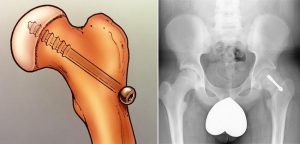الجراحة: يتم تثبيت رأس الفخذ بواسطة مسامير نخاعيه. وفي بعض الحالات قد يتم تثبيت الجهه المقابله لمنع حدوث انزلاق.